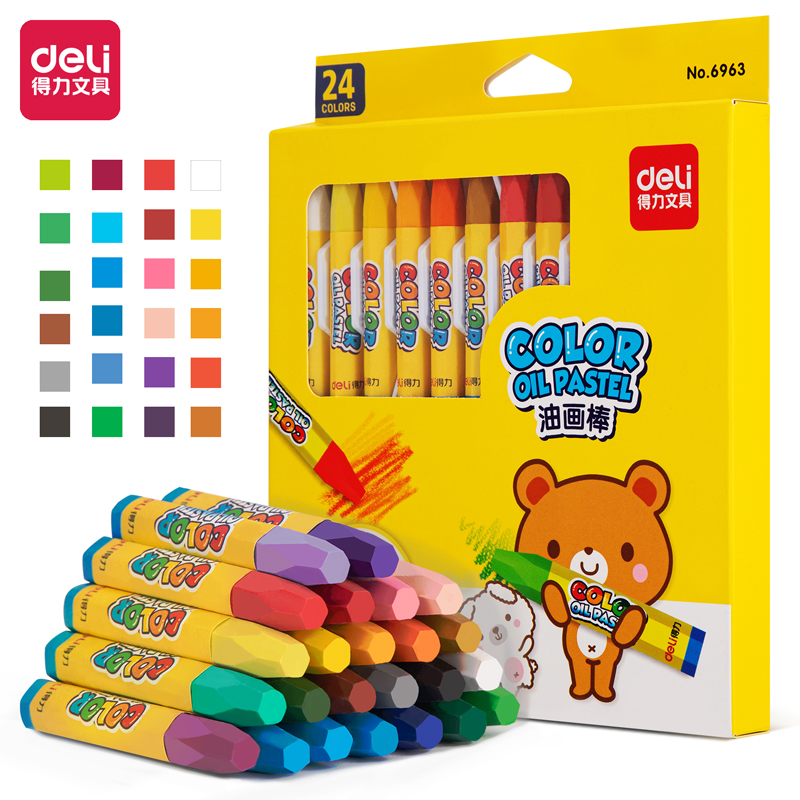 得力6963-24色优酷油画棒(20盒/条)
