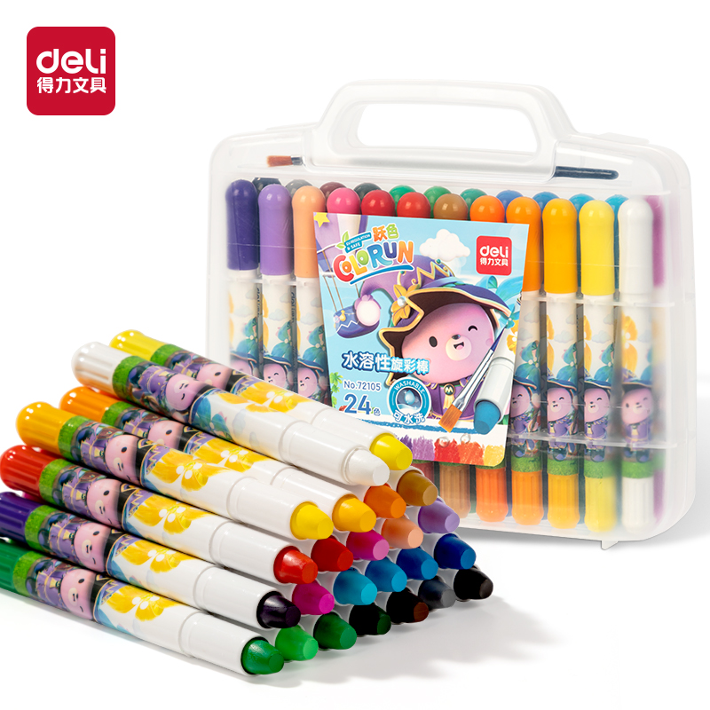 得力72056-24色水溶性旋转油画棒(8桶/盒)