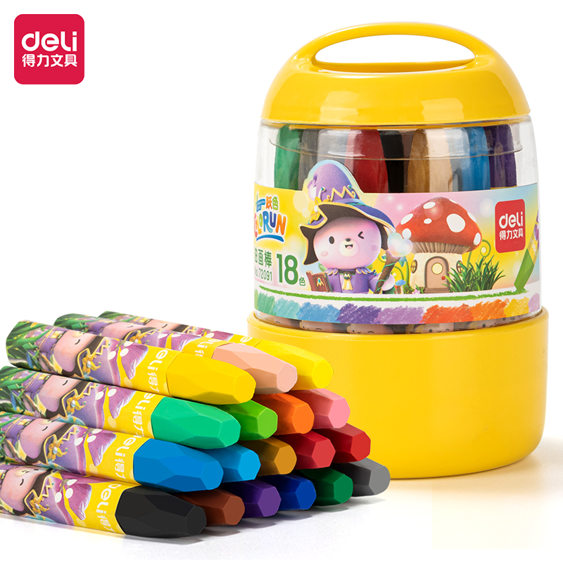得力72091-18色桶装油画棒(混)(12桶/中)