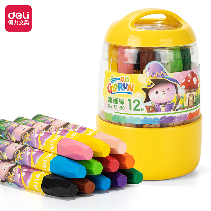 得力72090-12色桶装油画棒(混)(12桶/中)