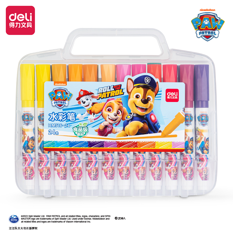 得力HM516-24-汪汪队PP盒装食品级圆杆水彩笔(混)(12盒/中)