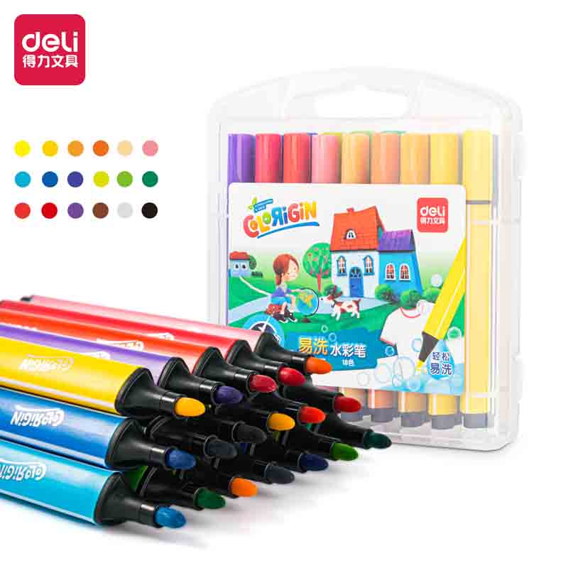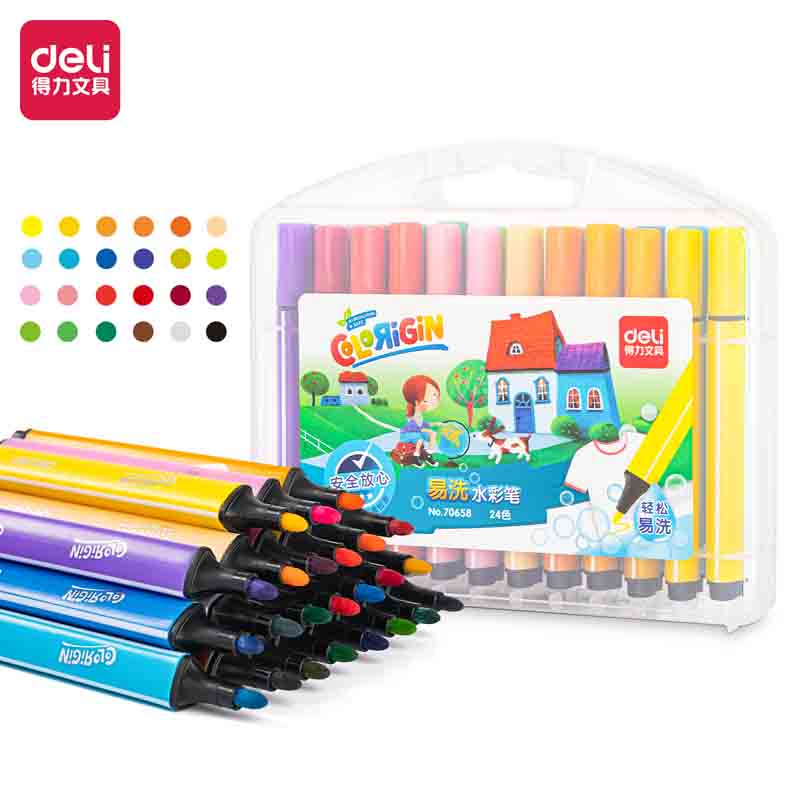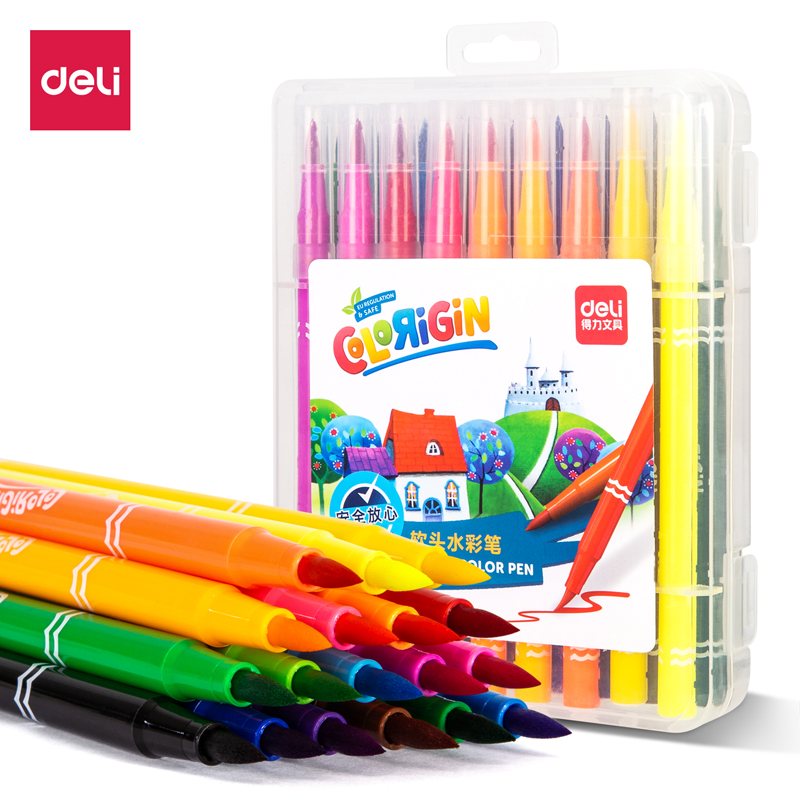 得力70682-18色软头水彩笔(混)(24盒/中)