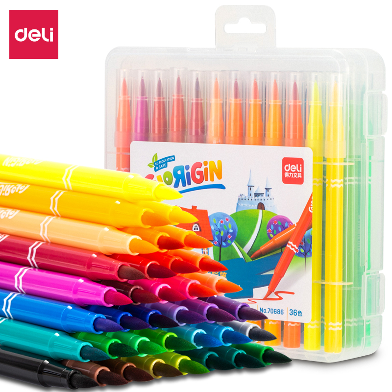 得力70659-36色粗三角杆水彩笔(6盒/中)