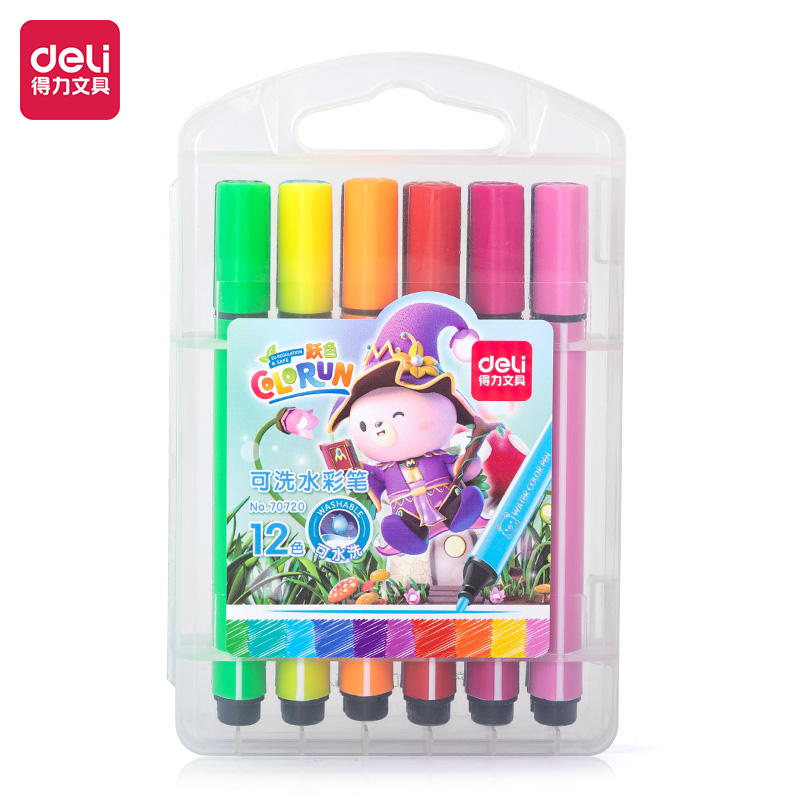 得力70720-12色卡通粗三角杆可洗水彩笔(混)(12盒/中)