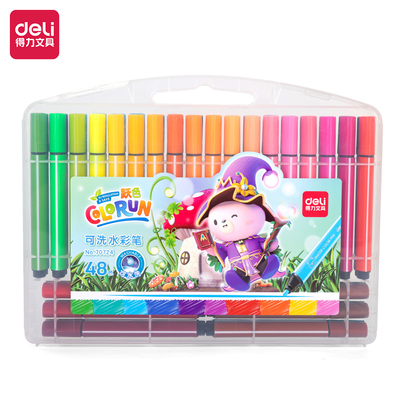得力70724-48色卡通粗三角杆可洗水彩笔(混)(4盒/中)