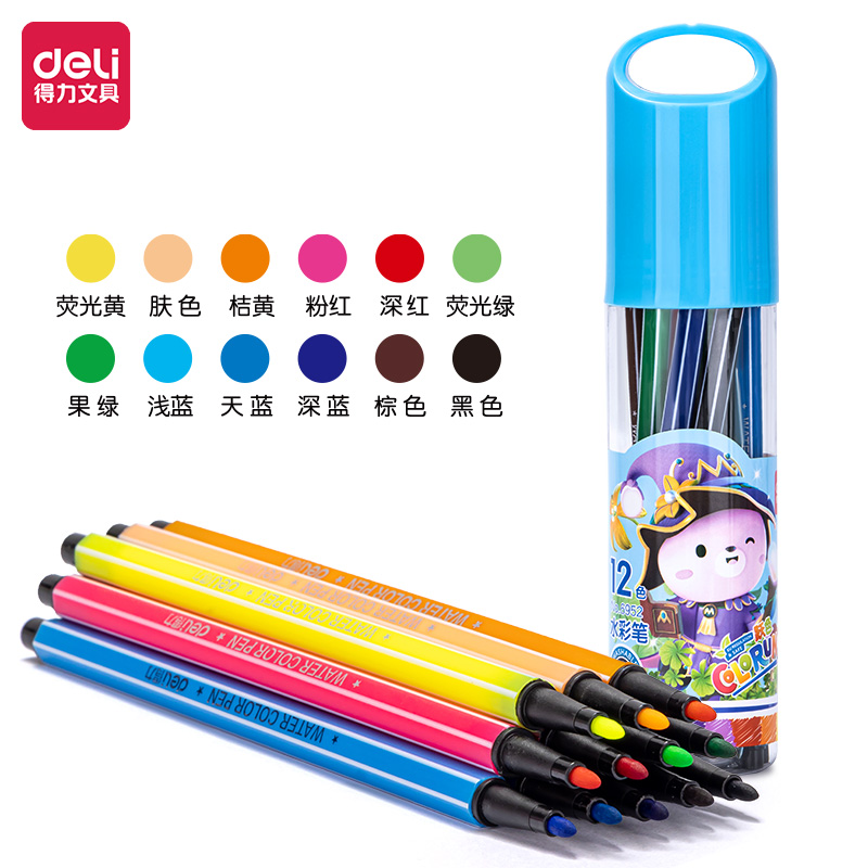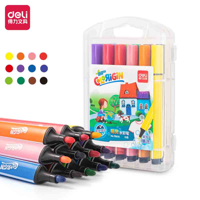 得力70656-12色粗三角杆水彩笔(12盒/中)