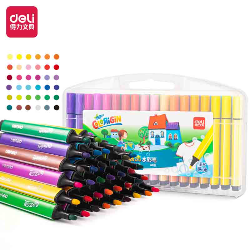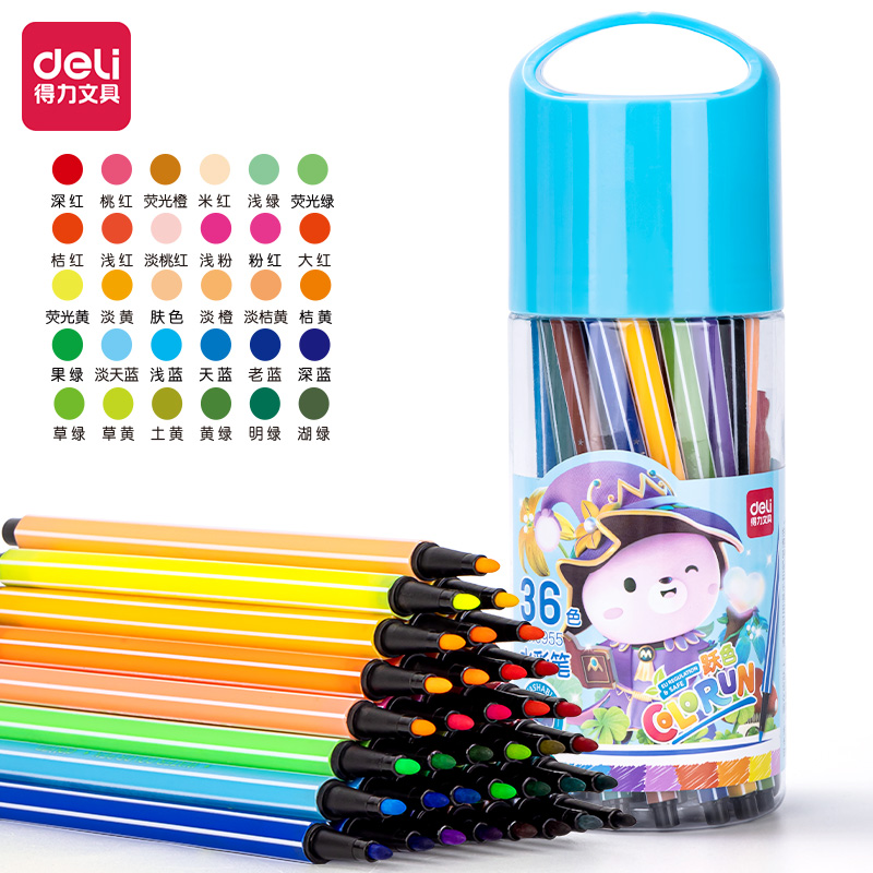 得力7060-36-36色细六角杆水彩笔(12桶/盒)