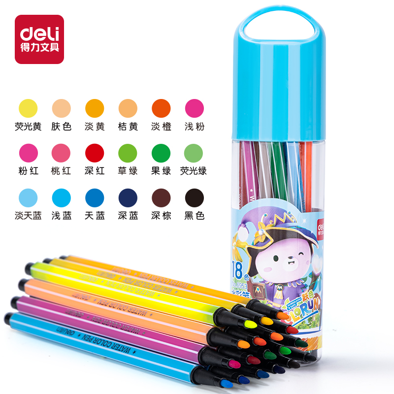 得力6953-18色水彩笔(蓝)(24筒/盒)