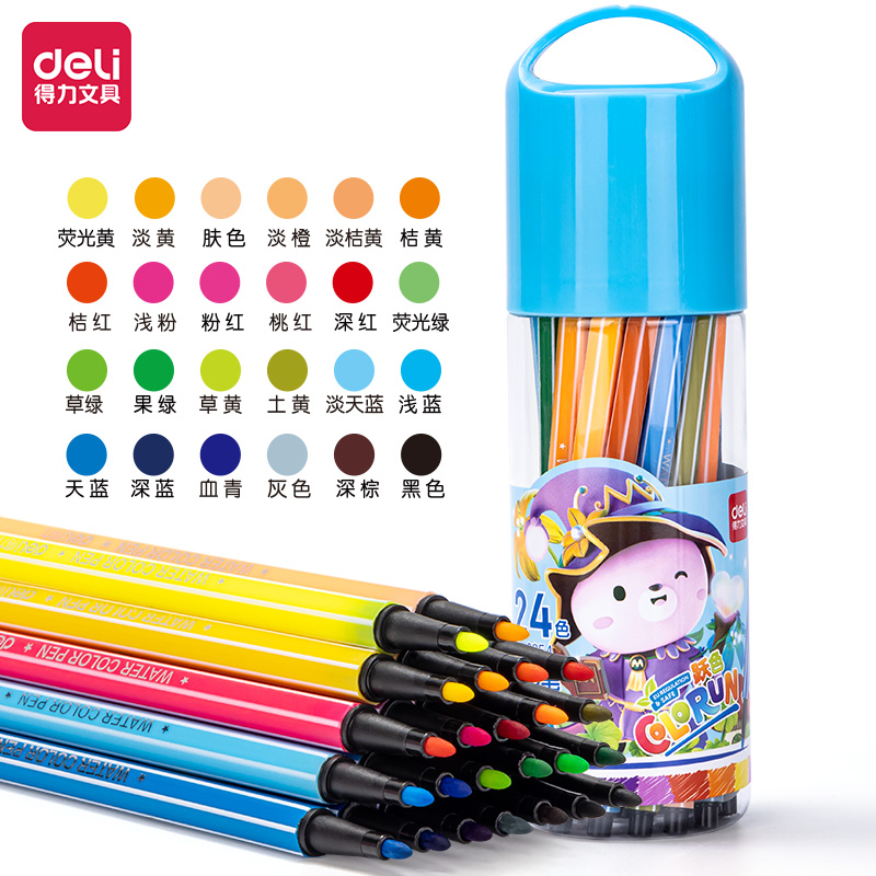 得力7060-24-24色细六角杆水彩笔(20桶/盒)