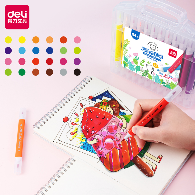 得力70672-24-24色软硬双头三角杆水彩笔(混)(8盒/中)