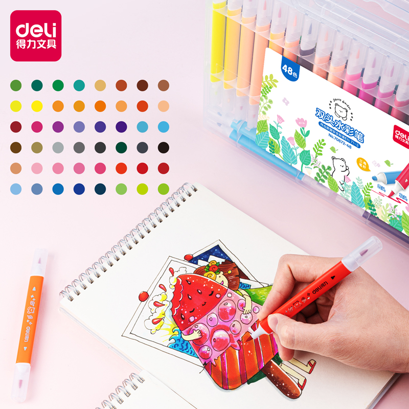 得力70672-48-48色软硬双头三角杆水彩笔(混)(4盒/中)