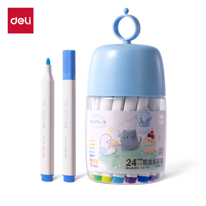得力YY906-30-幽幽家族30色PP筒装三角杆易洗水彩笔(混)(12筒/中)