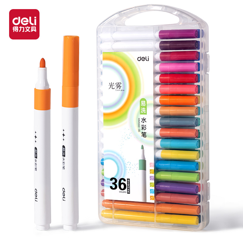 得力HM660-36三角杆水彩笔(混)(30支易洗+6支闪光)(8盒/中)