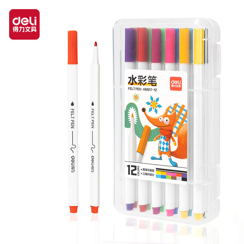 得力HM517-12-三角拉杆水彩笔(12盒/中)