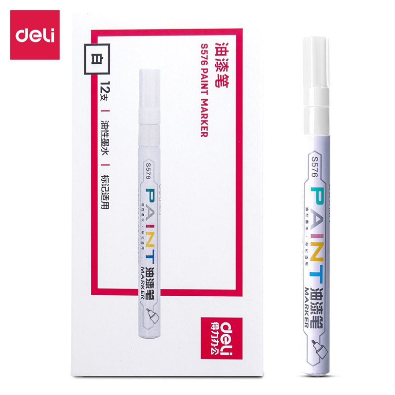 得力S576-细油漆笔(12支/盒)红色/白色/黑色/金色