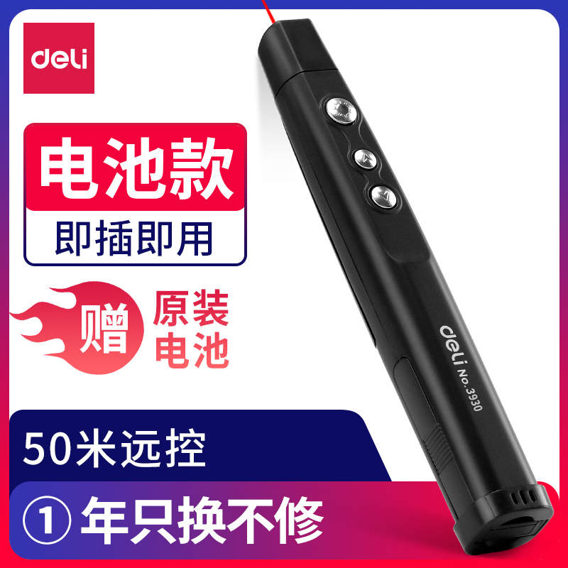 得力50603-远距离红光激光翻页笔(黑)(12支/中)
