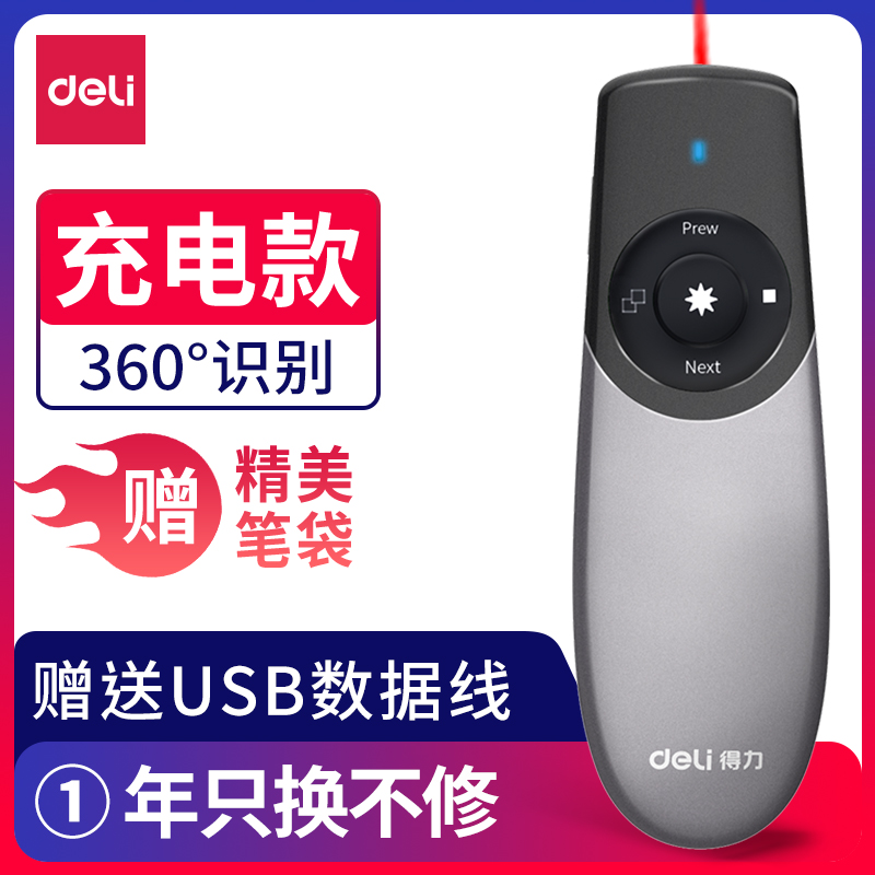 得力MA100-L-100m红光充电款激光翻页笔(深灰)(12支/中)