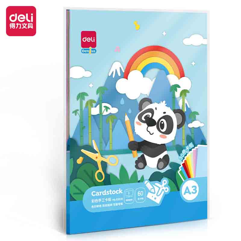 得力83638-A3/30色60张彩色手工卡纸(混)(9袋/中)