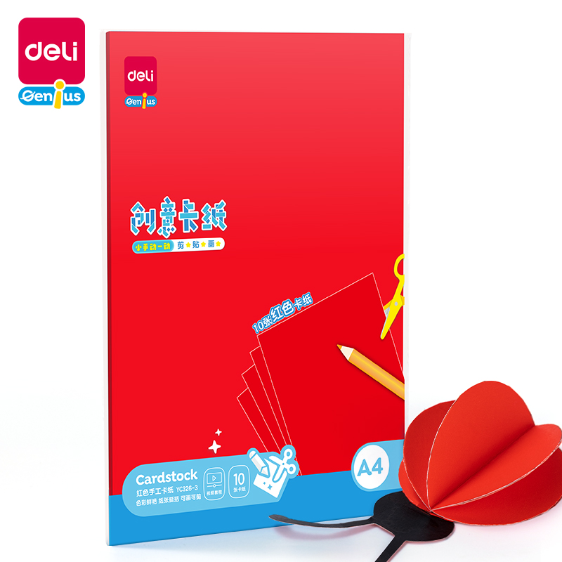 得力YC326-3-A4/10张红色卡纸(红)(100袋/中)