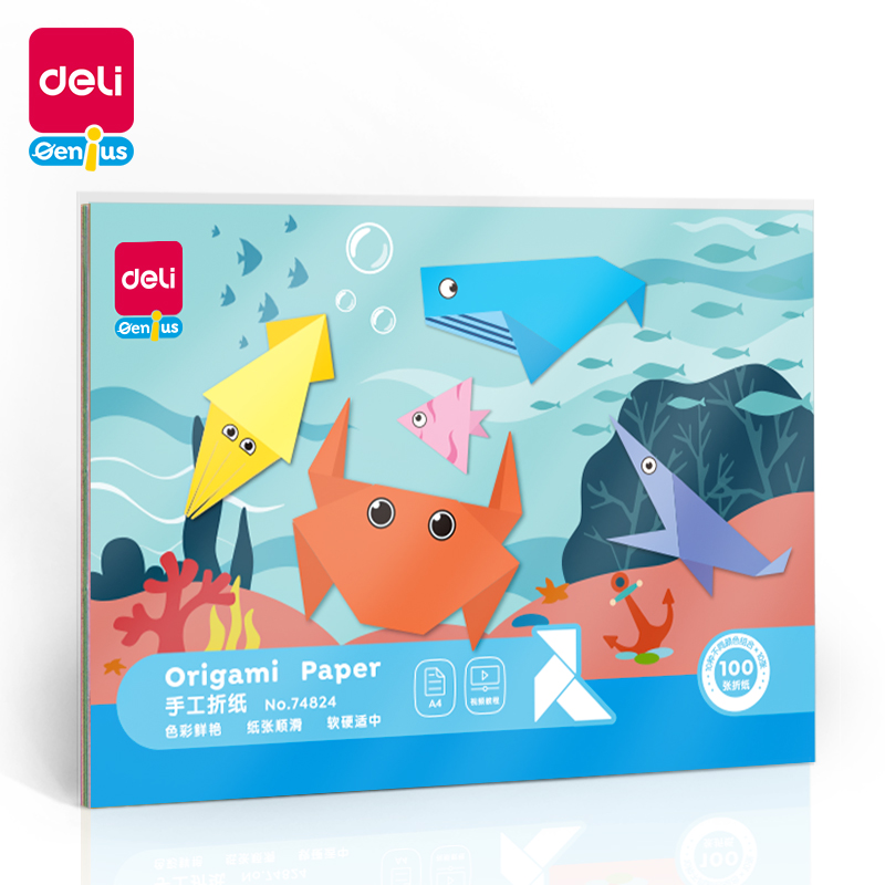 得力74824-A4/100张手工折纸(混)(12袋/中)