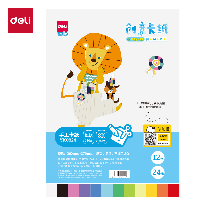 得力YKA424-A4/12色24张彩色手工卡纸(混)(90袋/箱)