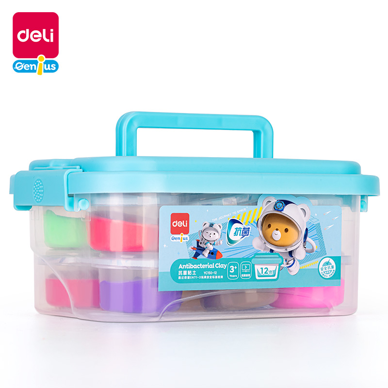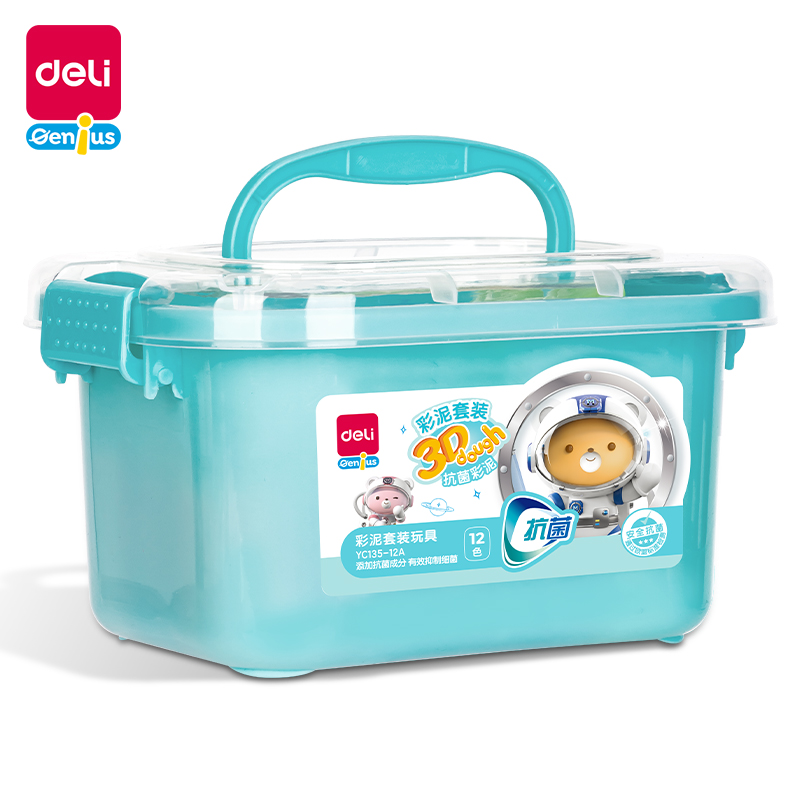 得力YC135-12-12色工具箱抗菌彩泥套装