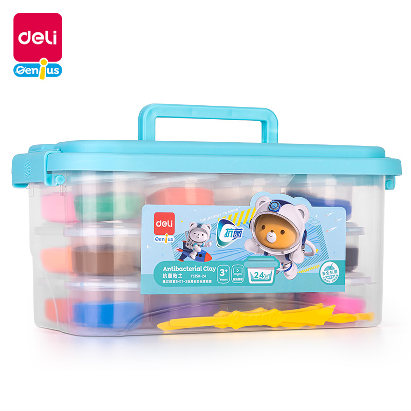 得力YC135-24-24色工具箱抗菌彩泥套装