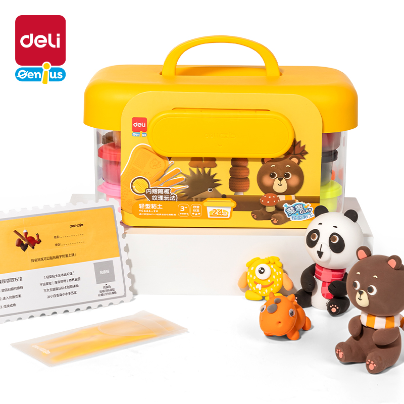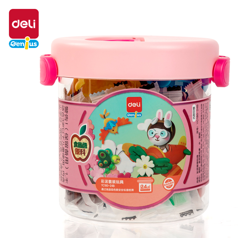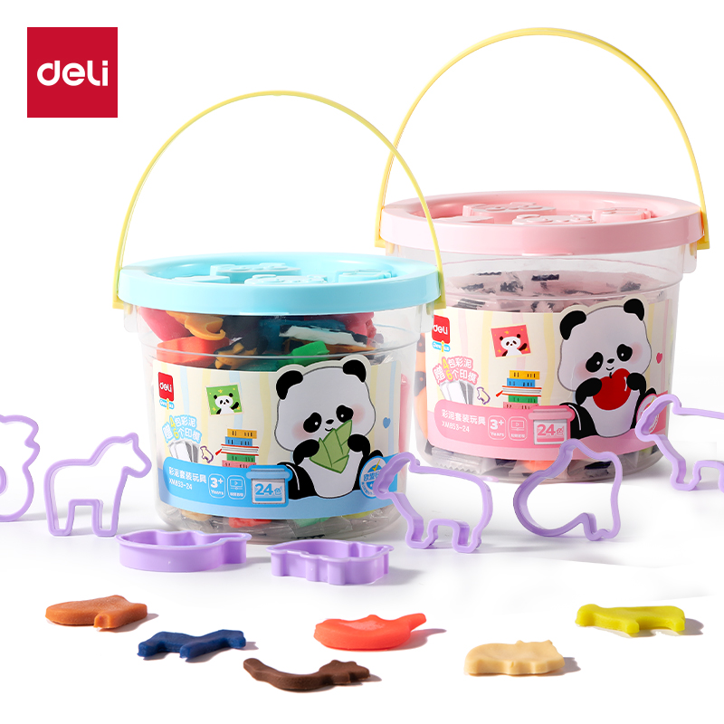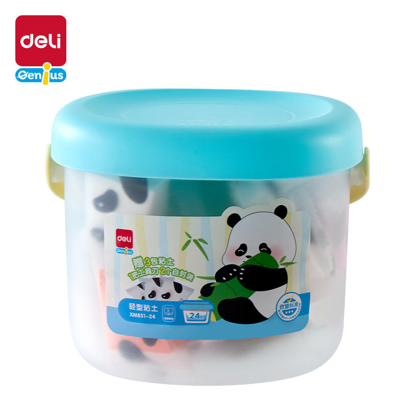 得力XM851-24-熊猫桶装粘土24色+3包(混)(24桶/中)