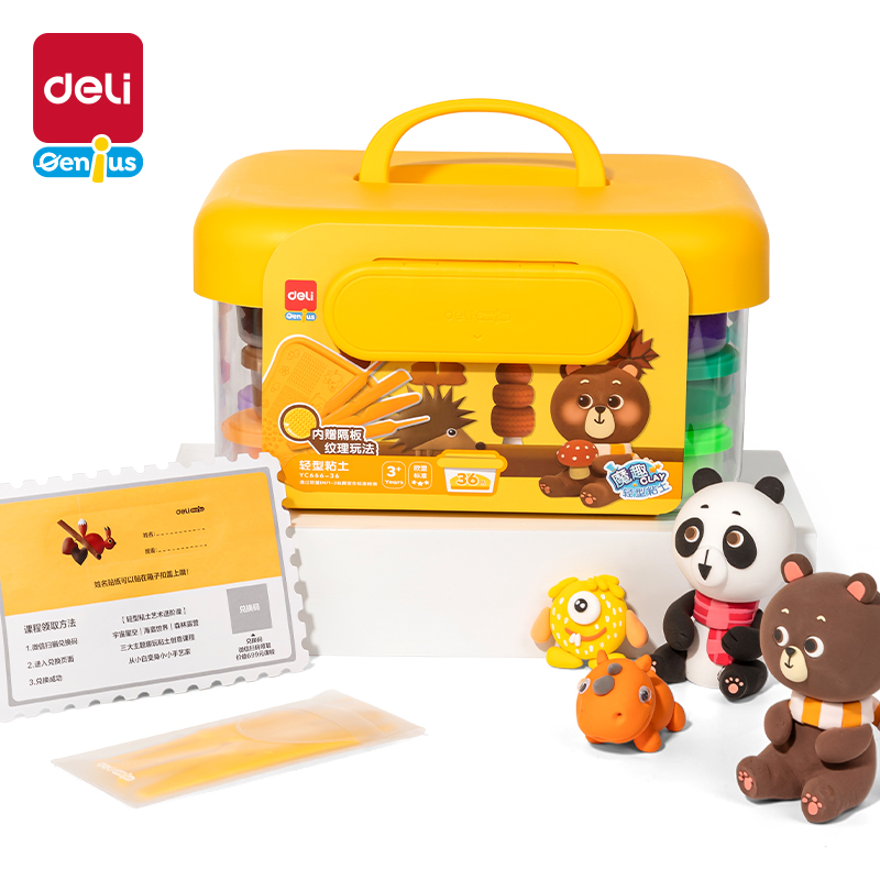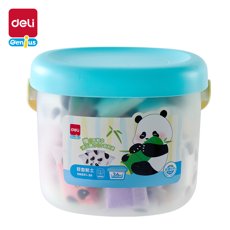 得力XM851-36-熊猫桶装粘土36色+3包(混)(18桶/中)