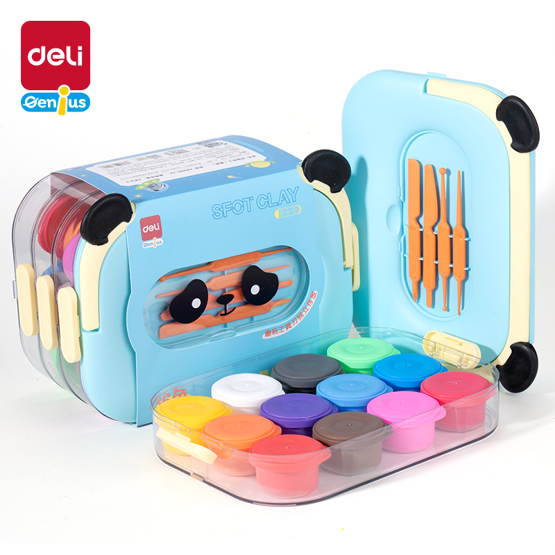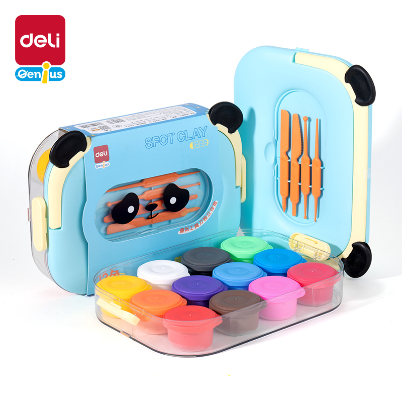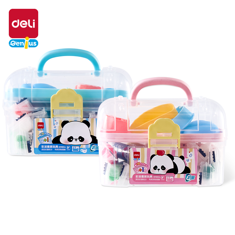 得力XM854-熊猫系列工具箱彩泥12+1抗菌款(混)(18盒/中)