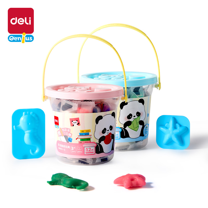 得力XM853-12-熊猫系列桶装彩泥12+2(混)(48桶/中)