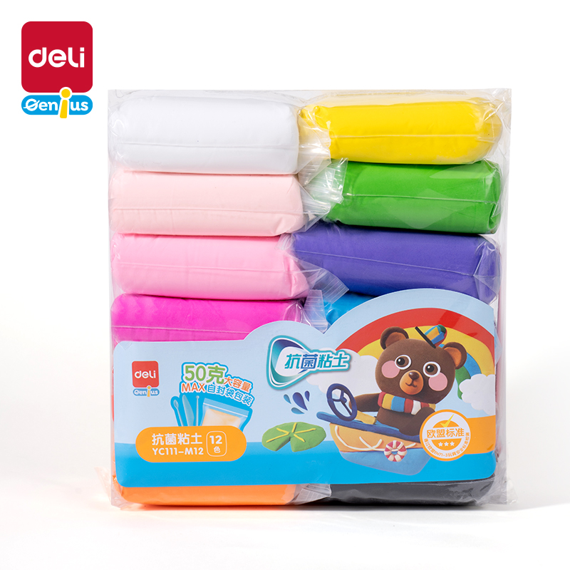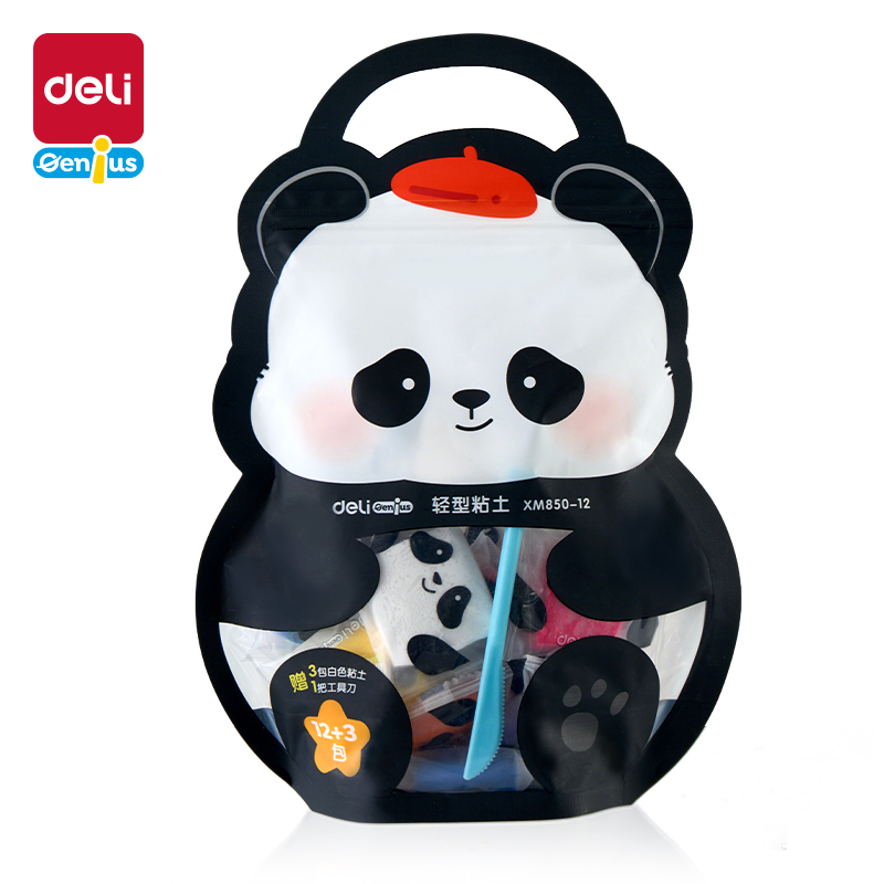 得力XM850-12-熊猫袋装粘土12色+3包(混)(72袋/中)