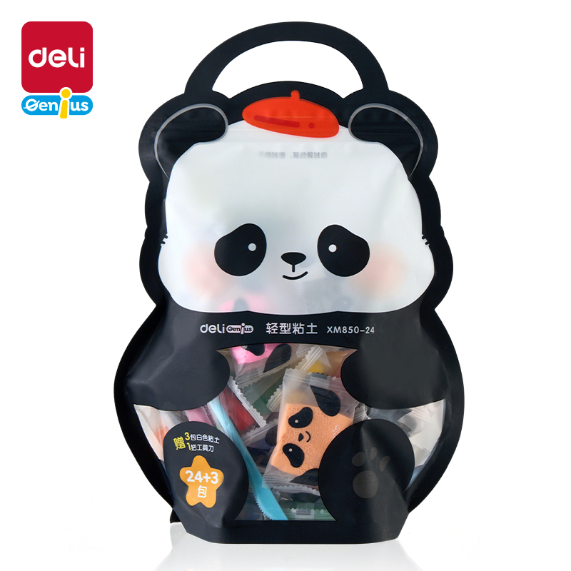得力XM850-24-熊猫袋装粘土24色+3包(混)(36袋/中)