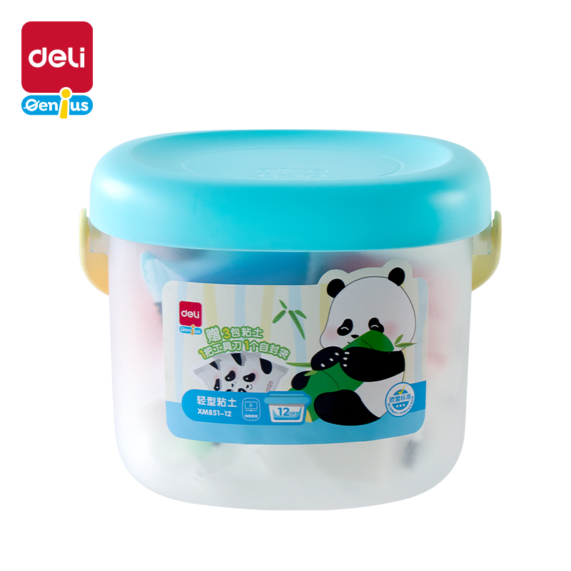 得力XM851-12-熊猫桶装粘土12色+3包(混)(40桶/中)