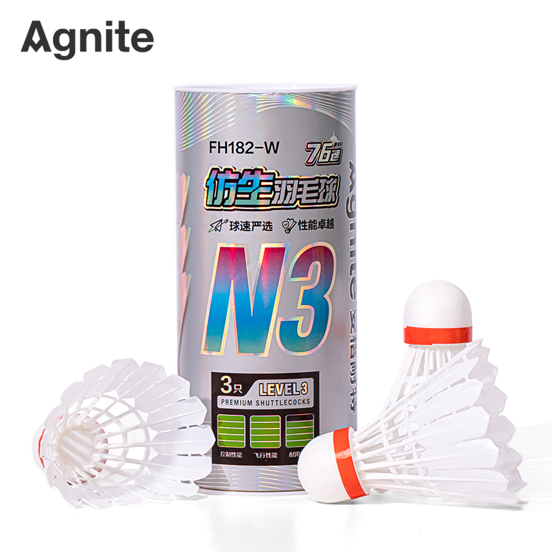 安格耐特FH182-W-3只装仿生尼龙羽毛球(76速)(白)(50筒/中)