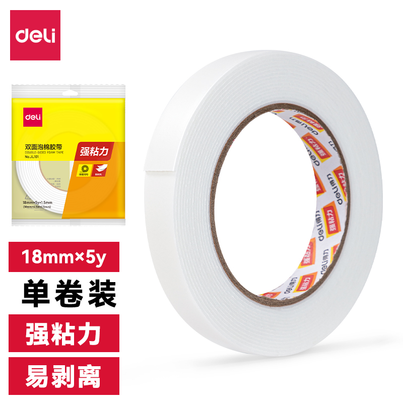 得力JL101-泡棉胶带18mm*5y*1.5mm(白)(16袋/中)
