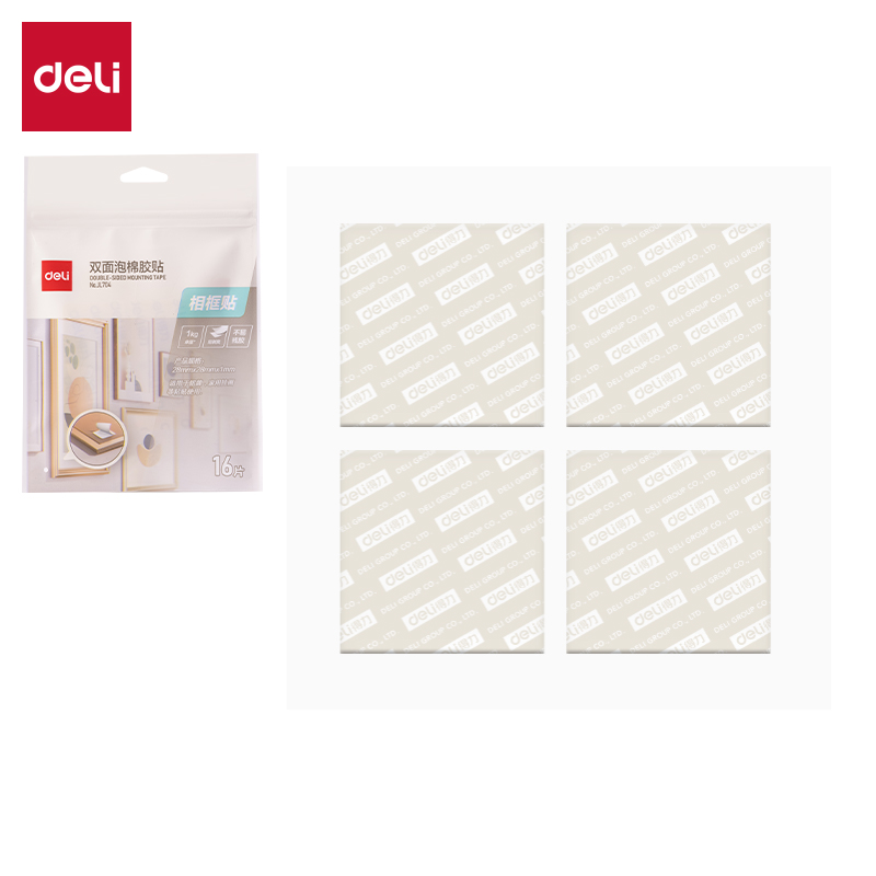 得力JL704-16片装双面泡棉胶贴28*28*1mm(白)(30袋/中)