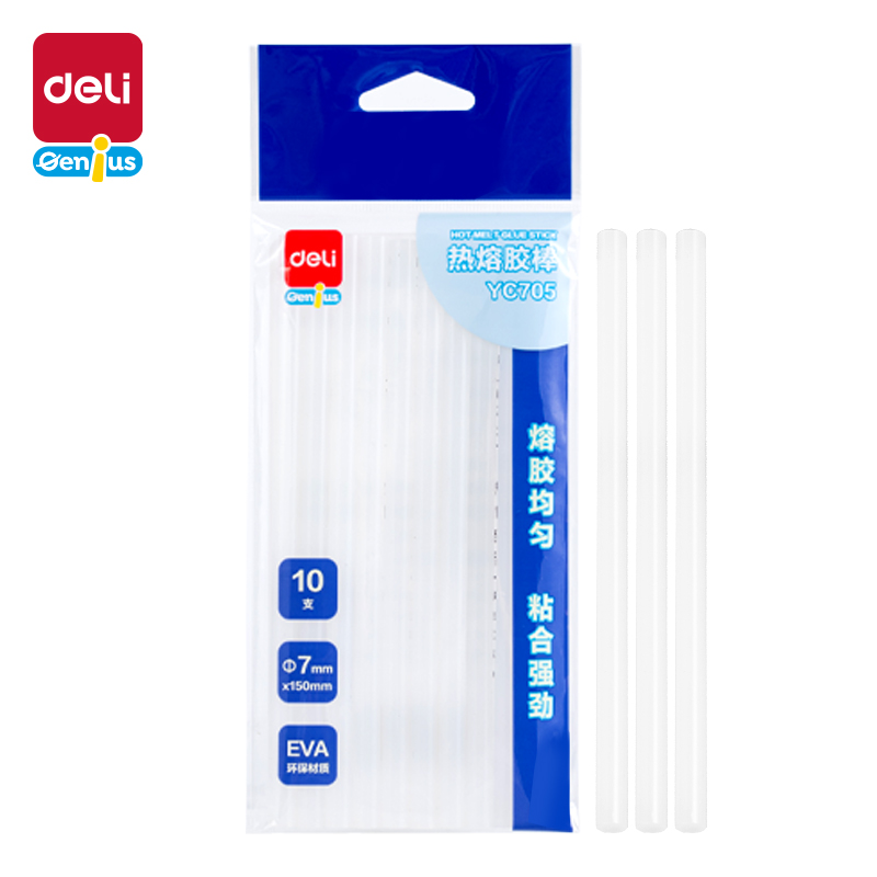 /得力YC705-7x150mm/10支装热熔胶棒(白)(75袋/中)