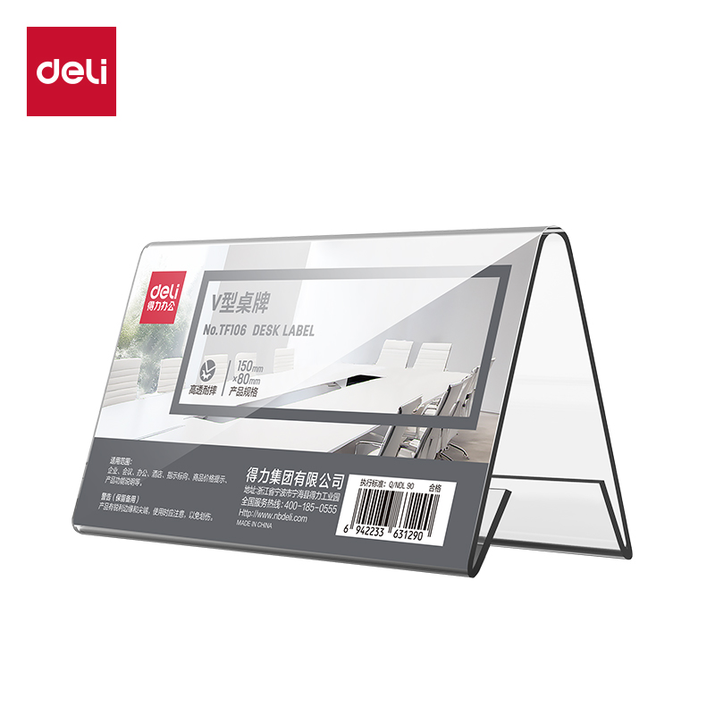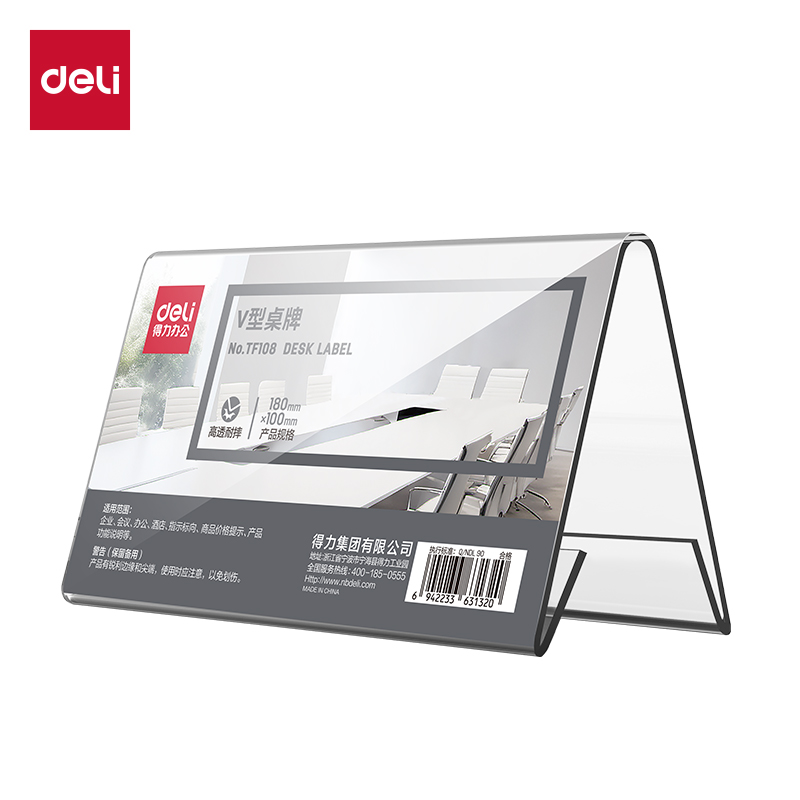 得力TF202-T型桌牌(透明)(180*100mm)(20个/中)