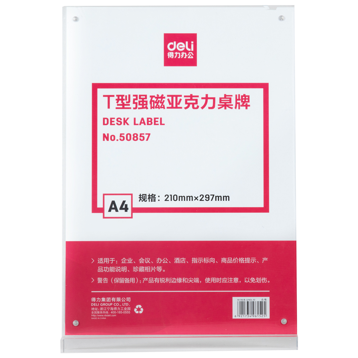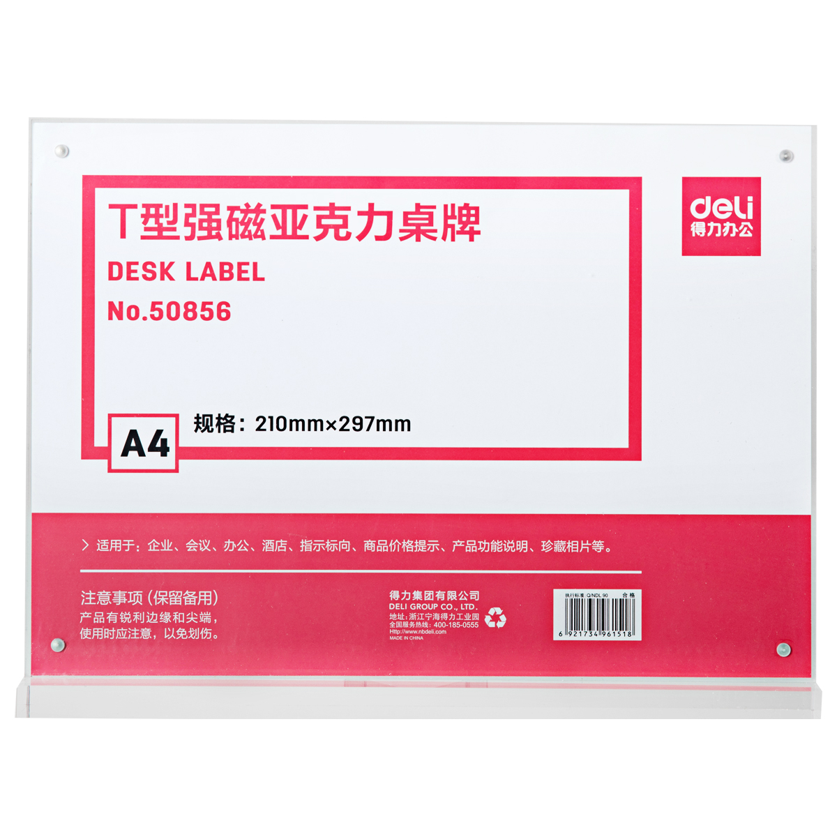得力50856-T型强磁亚克力桌牌297*210mm(12个/盒)