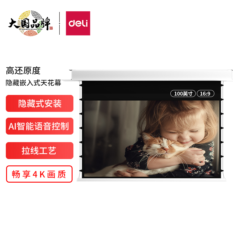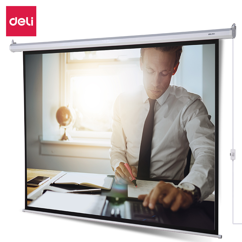 得力50492-电动悬挂投影幕(100英寸4:3)(白)