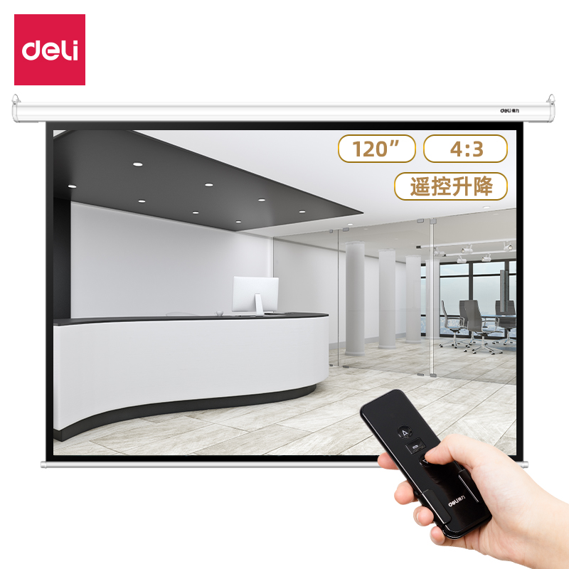 得力50441-电动遥控投影幕(120英寸4:3)(白色)