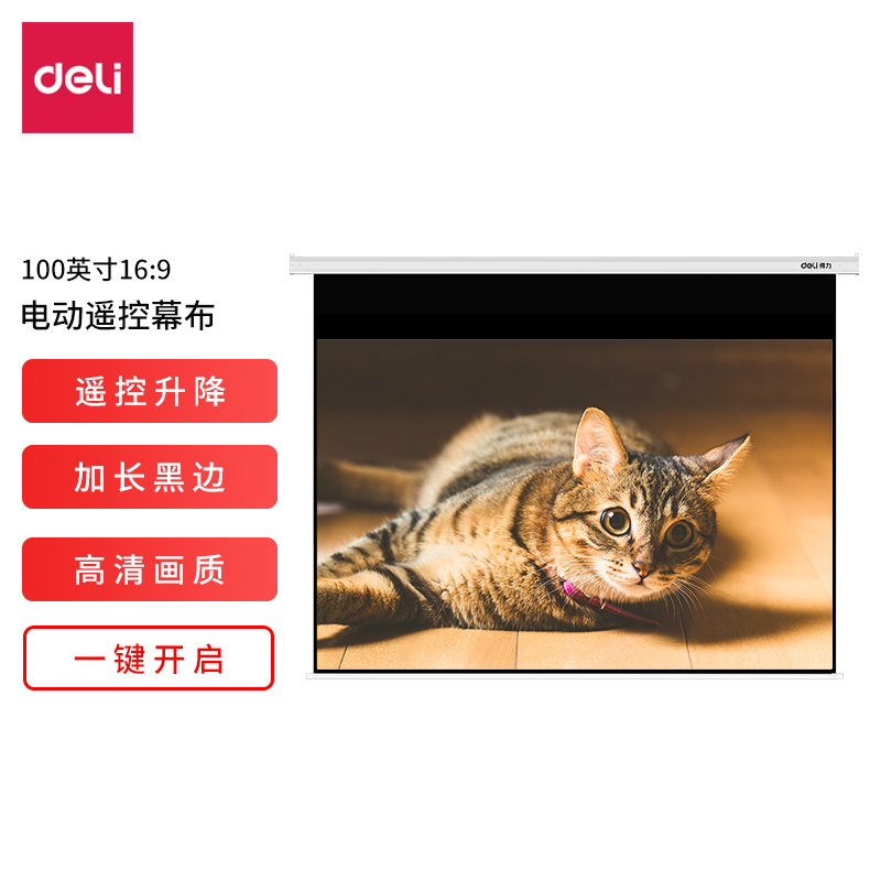得力50440-电动遥控投影幕(100英寸4:3)(白色)