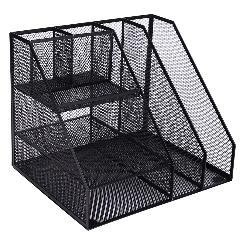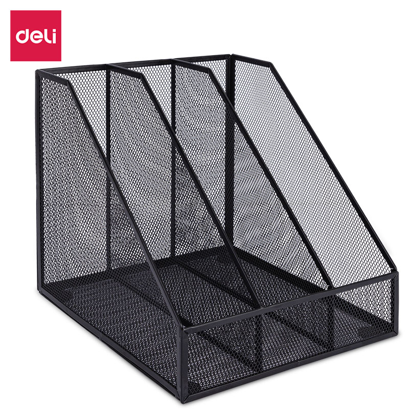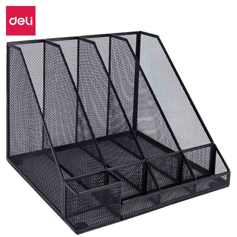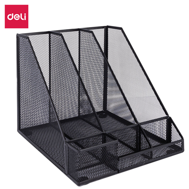 得力78988-四联金属网状带笔筒文件框/黑色/白色