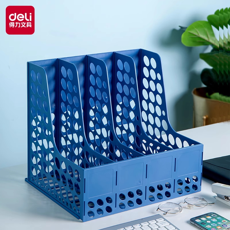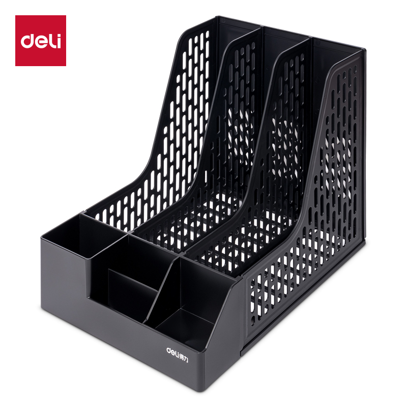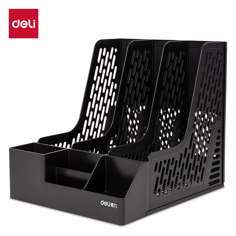 得力9844BES-带笔筒四联文件框/黑色/蓝色/灰色