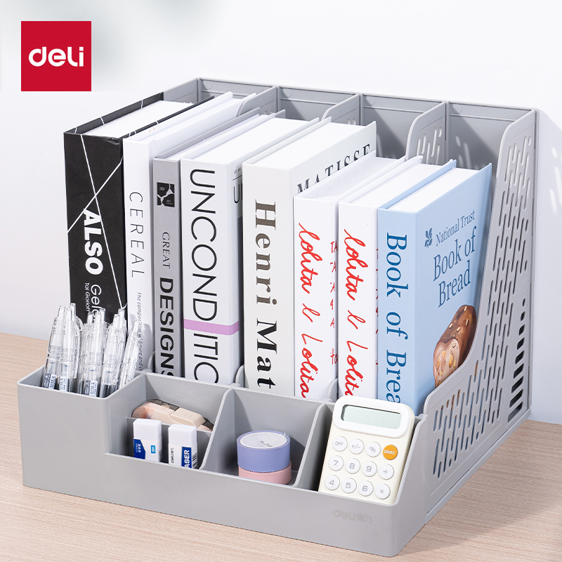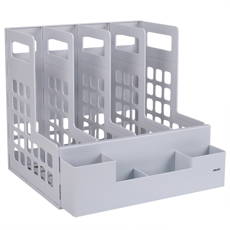 得力78983-四联带笔筒文件框深灰/浅灰(12个/盒)