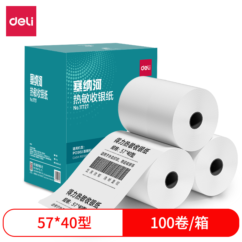 得力11727-57mm*40mm*11m塞纳河热敏收银纸(100卷/箱)