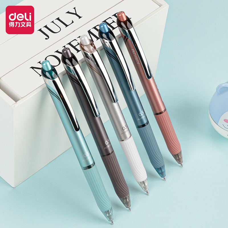 /得力A9-05-0.5mm臻顺滑金属按动签字中性笔/皦玉色/花青色/结绿色(10盒/中)