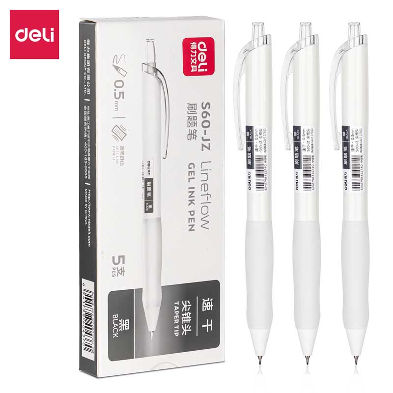 得力S60-JZ-0.5mm尖锥头速干顺滑刷题按动中性笔(5支/盒)