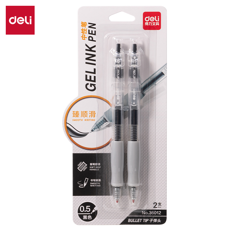 得力36012(S128)-0.5mm/2支卡装弹簧头臻顺滑办公中性笔(24卡/中)